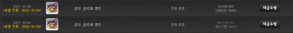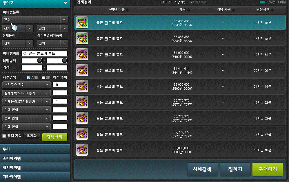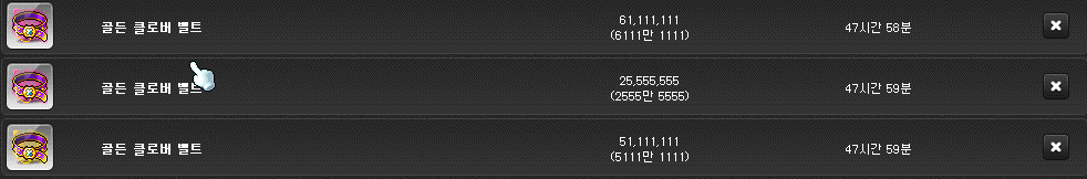 (2555만 5555메소 골든 클로버 벨트는 추옵과 잠재가 다를 경우의 가격입니다.