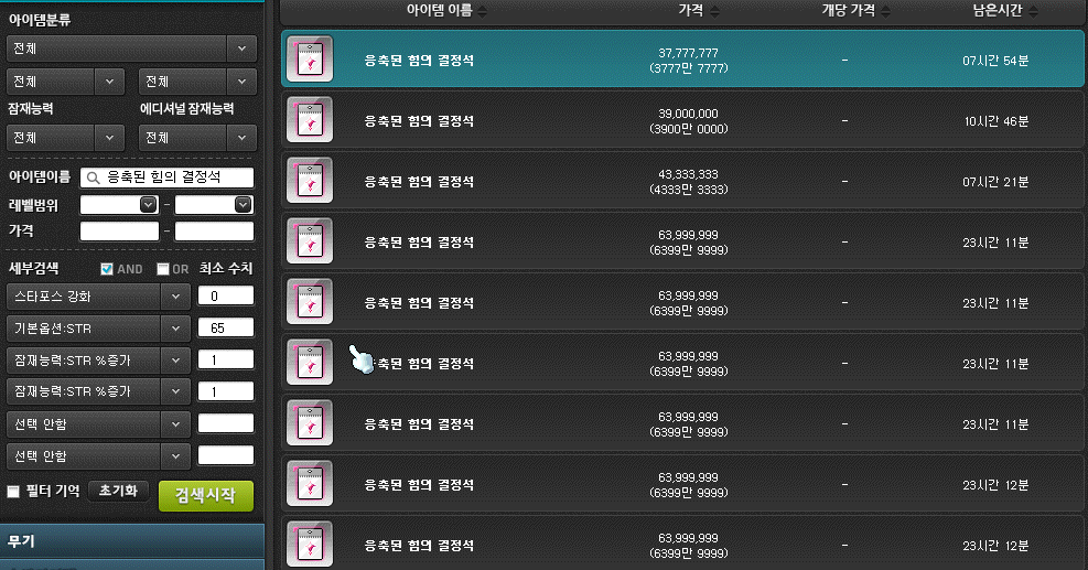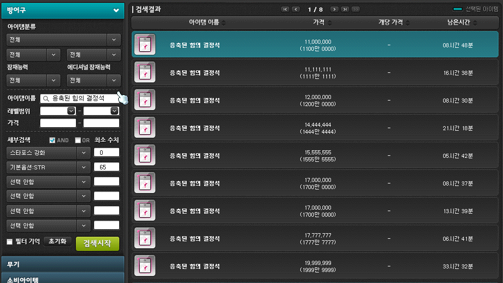 60급 응축된 힘의 결정석의 가격은 1100 ~ 1200만 메소 가량입니다.