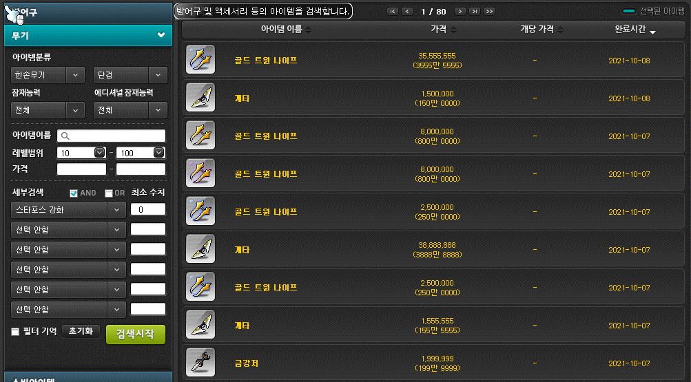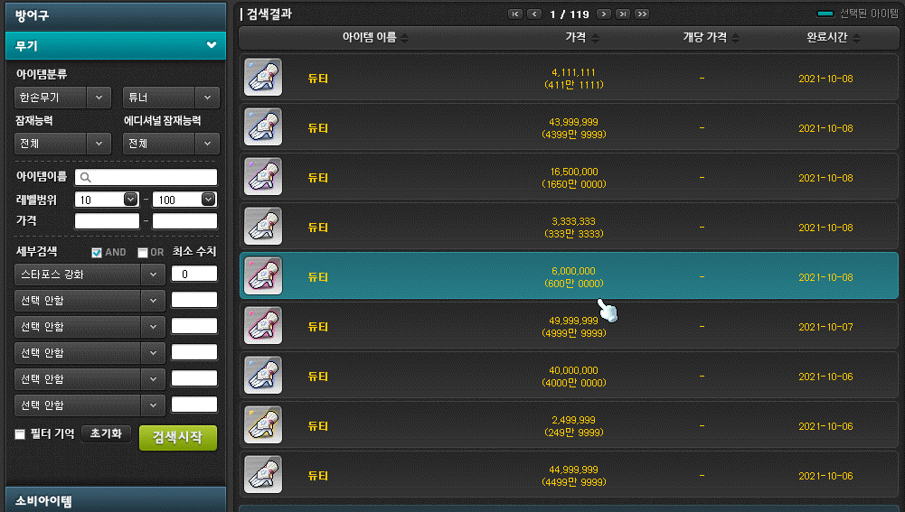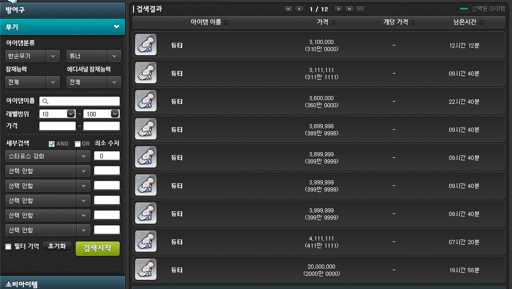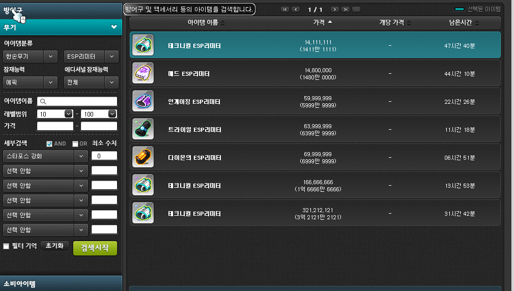 이러한 점을 이용해서 각 아이템의 시세를 확인하신 후 제작하시면 됩니다.