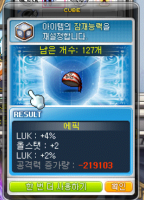 수상한 큐브 비용(13개 사용) - 1,444,443 메소
