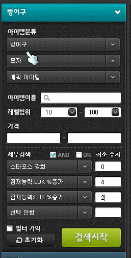 내가 나온 아이템의 옵션을 세부 검색에 입력한 후 검색해줍니다.