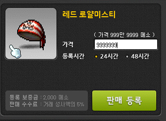 이 옵션은 최저 30,000,000 메소까지 벌 수 있습니다.