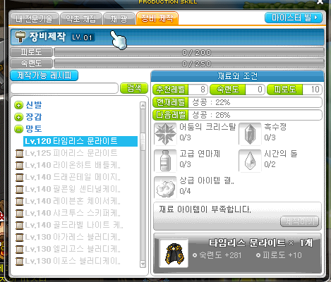 마이스터빌에 장비 제작 명장을 찍으신 후 진행할 수 있는데,